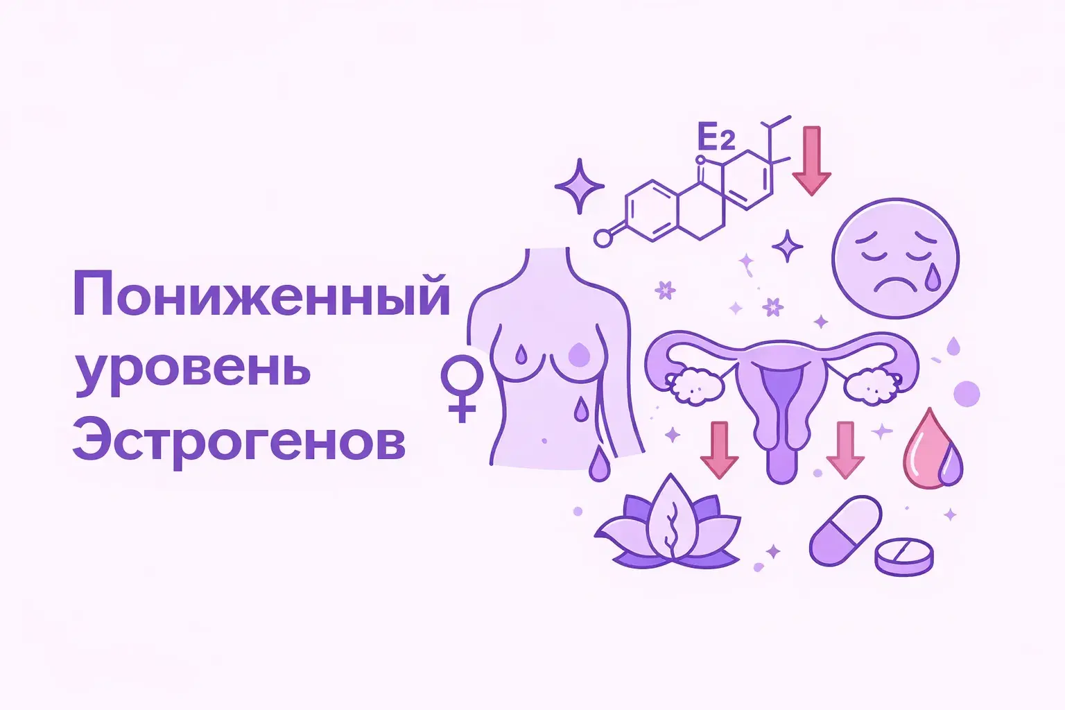 Полный список симптомов дефицита эстрогенов, причины и способы гормональной коррекции.